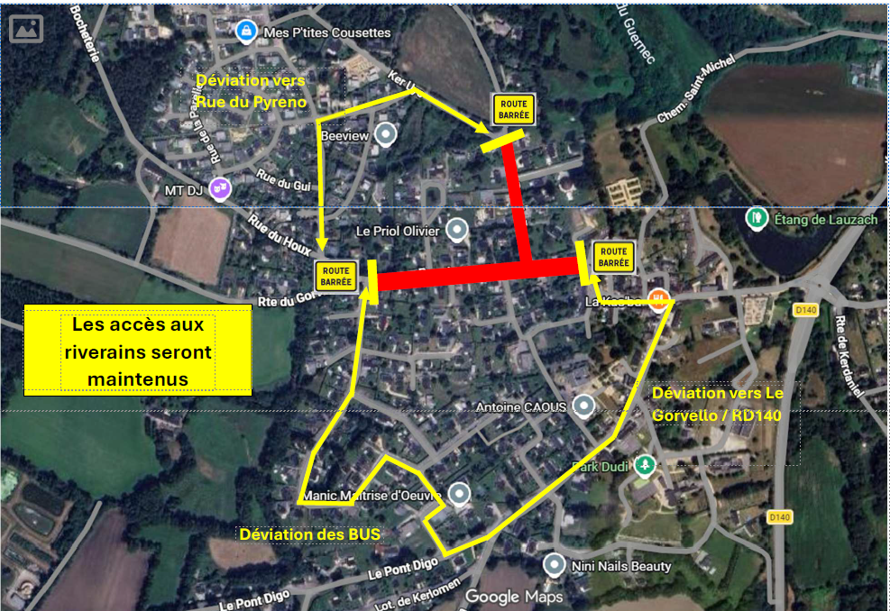 Un passage piéton sera mis en place rue du Grand Clos pour permettre aux élèves de rejoindre le car en toute sécurité. (BreizhGo se charge de communiquer ces informations aux familles concernées).