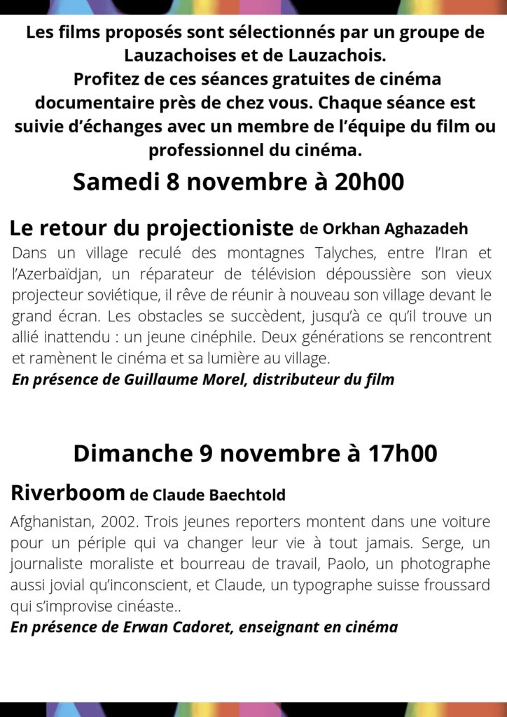 Lauzach Lauzach Bienvenue à Lauzach La Biodiversité à Lauzach : Parc Naturel Régional et Atlas Lauzach en photos Vie communale Equipe municipale et Conseils municipaux Bulletins Vie scolaire CANTINE ET PERISCOLAIRE ECOLE NOTRE DAME DE LA CLARTE ECOLE PUBLIQUE LA FARANDOLE CARRE DES ARTS / Karrez an Arzoù Vie associative Vivre ensemble, lutte contre les nuisibles et informations pratiques Vie économique Services Culture Aînés Déchets Eau et assainissement Enfance jeunesse Salle polyvalente Transport scolaire Urbanisme NOVEMBRE – LE MOIS DU DOC le 18 octobre 2025 LE MOIS DU DOC Le Cube se transforme en cinéma et ouvre gratuitement ses portes pour la projection de films documentaires en présence de leurs auteurs Samedi 8 novembre – 20h00 Dimanche 9 novembre – 17h00