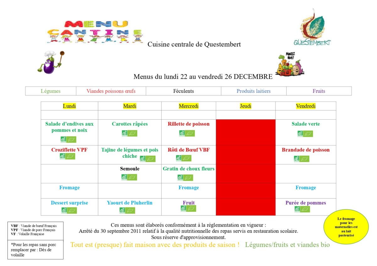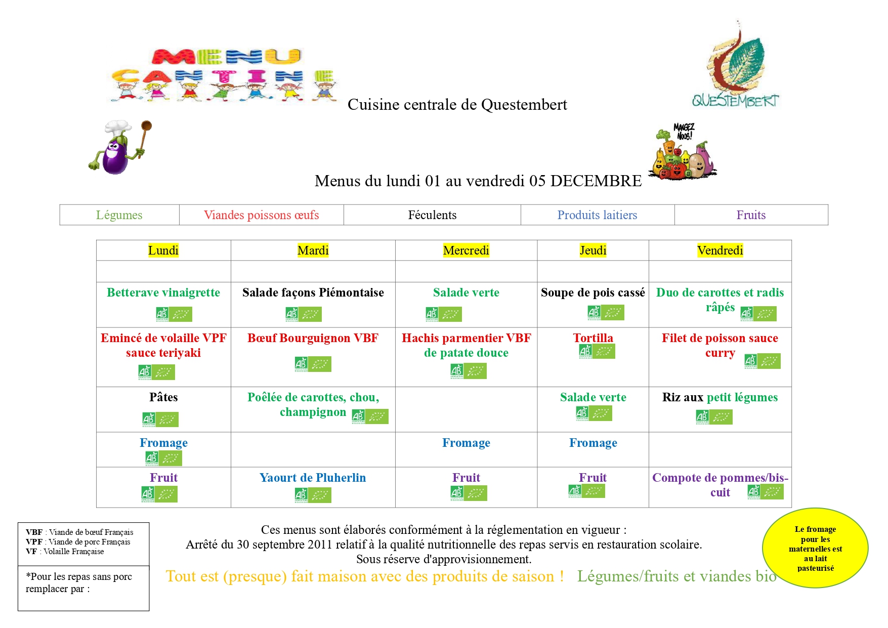 La cuisine centrale est passée en régie directe depuis septembre 2024. Les achats et la préparation des repas sont assurés par le personnel communal de la Ville de Questembert et distribués sur les différents sites . Elle prépare 900 repas par jour en moyenne assurant le multi accueil – crèche municipale, les écoles maternelles et élémentaires de Questembert, Lauzach et Limerzel, la Résidence Autonomie et le centre de loisir “Pomme d’Api”.